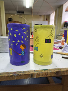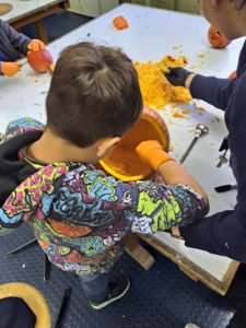 In der Werkstatt entstanden Windlichter und Fensterbilder, Kastanienfiguren, Blätterdrucke und bunte Vogelhäuser aus Milchkartons. Natürlich durften auch weitere Herbst-Klassiker wie selbst geschnitzte Halloween-Kürbisse und Laternen für Sankt Martin nicht fehlen.